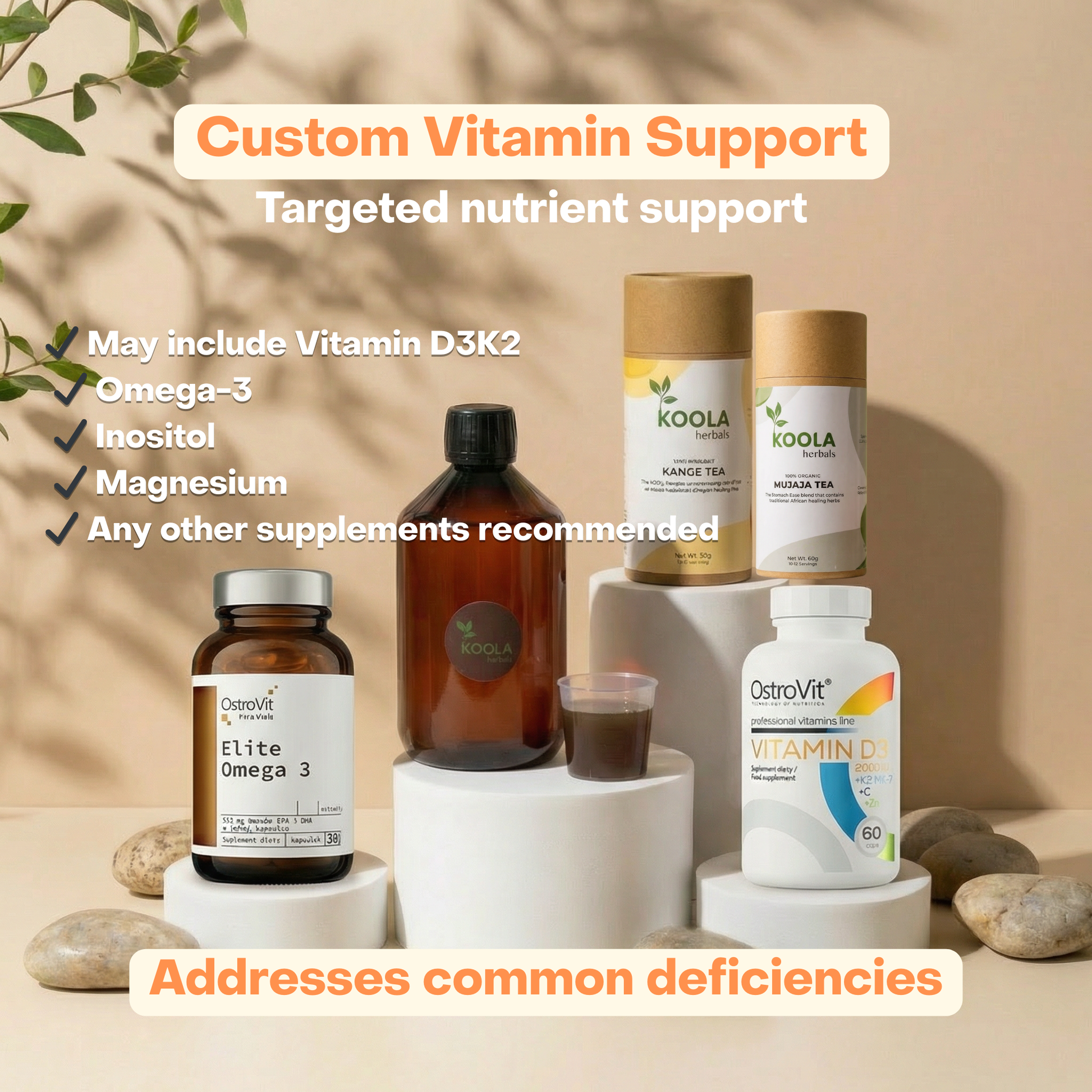 Many women with PCOS, fibroids, endometriosis and adenomyosis are low in key nutrients like Vitamin D, magnesium, omega-3 and inositol. This bundle helps you identify what your body may need and supports you step by step.